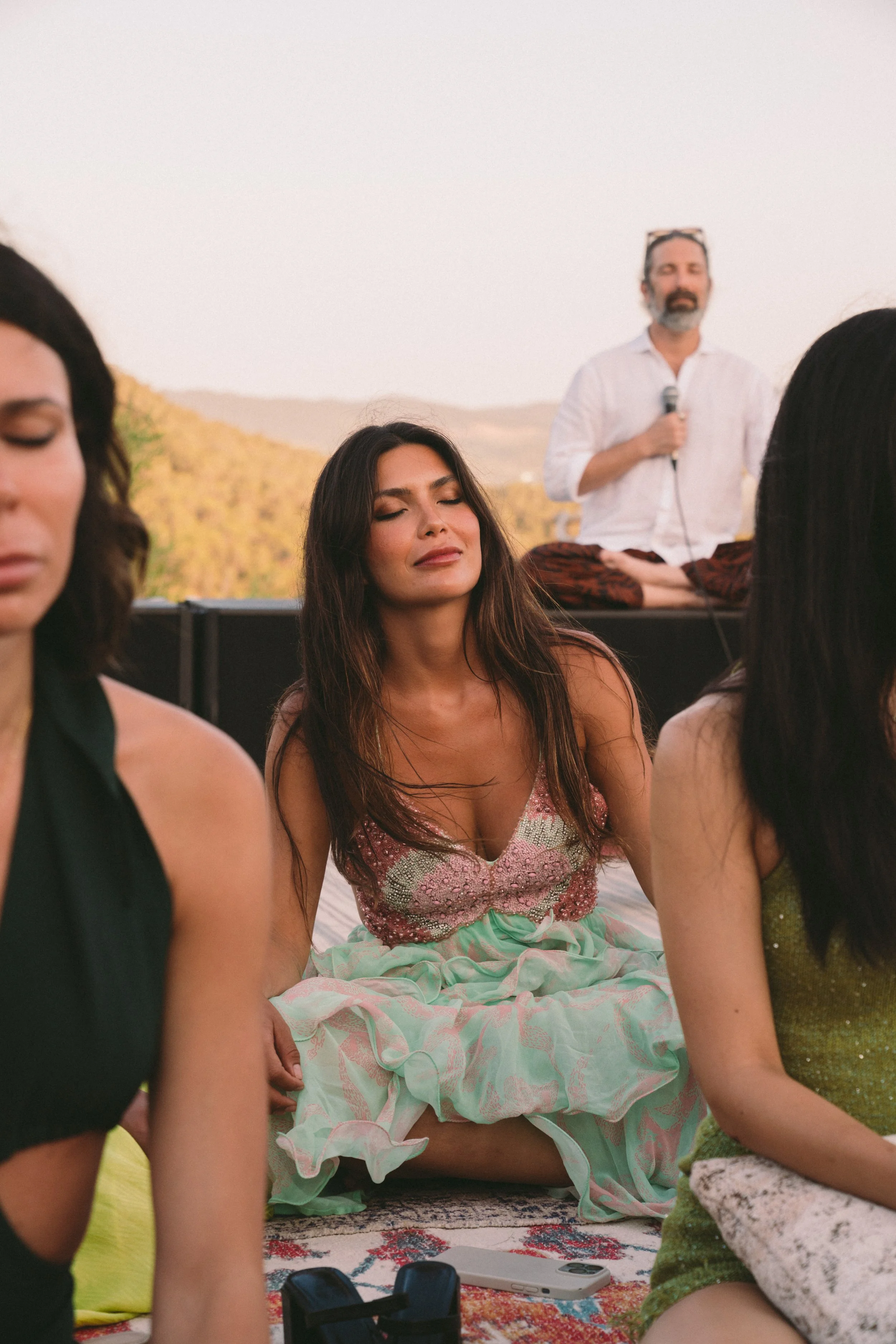 Andrea is Mar de Conciencia's founder. Over a decade of spiritual immersion, across traditions, methods of healing, and paths of expansion, she has built something singular: a way of designing experiences that move people. A yoga class becomes something else entirely when it happens next to a river. She builds around that.